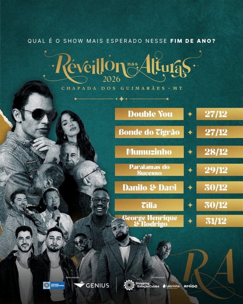 27/12/2025 – Double You 27/12/2025 – Bonde do Tigrão 28/12/2025 – Mumuzinho 29/12/2025 – Os Paralamas do Sucesso 30/12/2025 – Danilo e Davi 31/12/2025 – George Henrique e Rodrigo